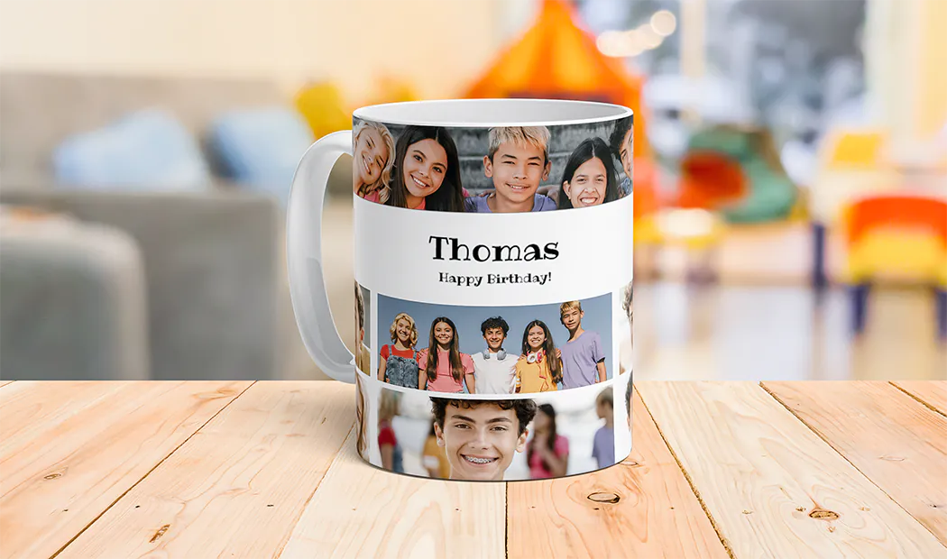 Mostra tutte le tue foto preferite con una tazza collage. Scegli un modello, carica le immagini e personalizza con adesivi e testo. Adatta a microonde e lavastoviglie.