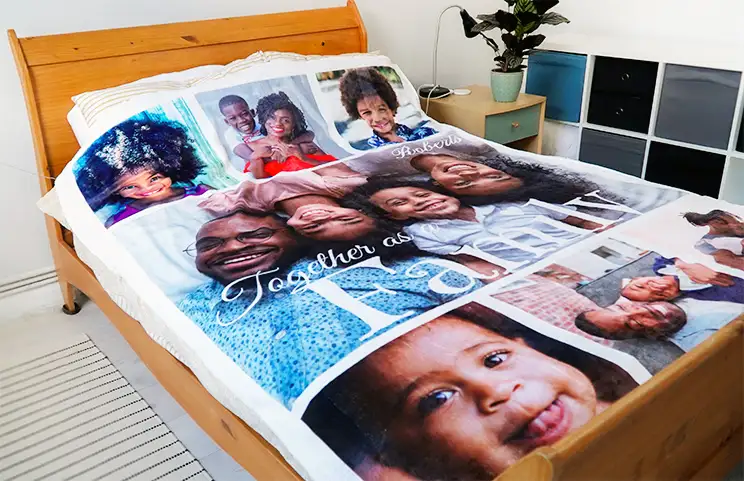Dona calore e stile a qualsiasi ambiente con un plaid personalizzato con foto.