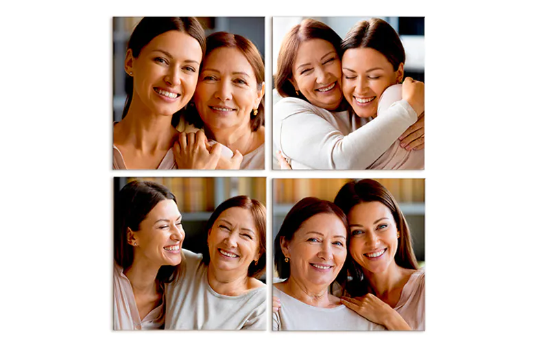Un classico intramontabile — disponi le tue 4 piastrelle fotografiche in una griglia ordinata o in stile libero.