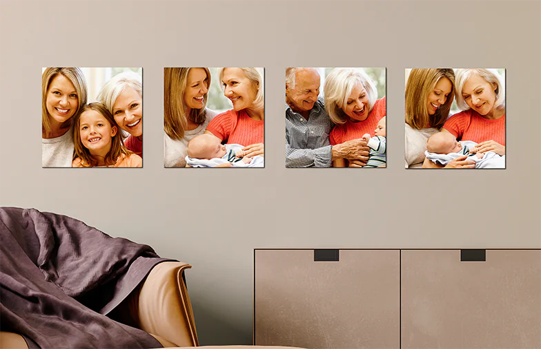 Un classico intramontabile — disponi le tue 4 piastrelle fotografiche in una griglia ordinata o in stile libero.