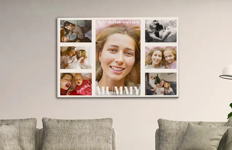 Su Printerpix, abbiamo una piattaforma intuitiva che ti permette di caricare foto, personalizzare il tuo design e ordinare la tua stampa su tela con collage di foto unica - tutto in un unico posto.