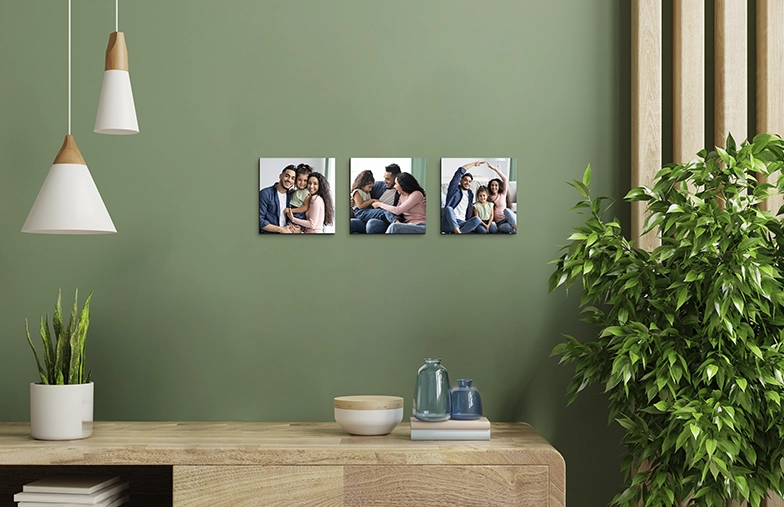 A differenza delle tradizionali foto incorniciate, le piastrelle da parete permettono di essere creativi nella disposizione. Giocate con diverse disposizioni per creare un collage che rifletta il vostro stile. Potete progettare un tema coesivo, mescolare foto di diverse fasi della vita o persino raccontare una storia visiva attraverso più piastrelle.