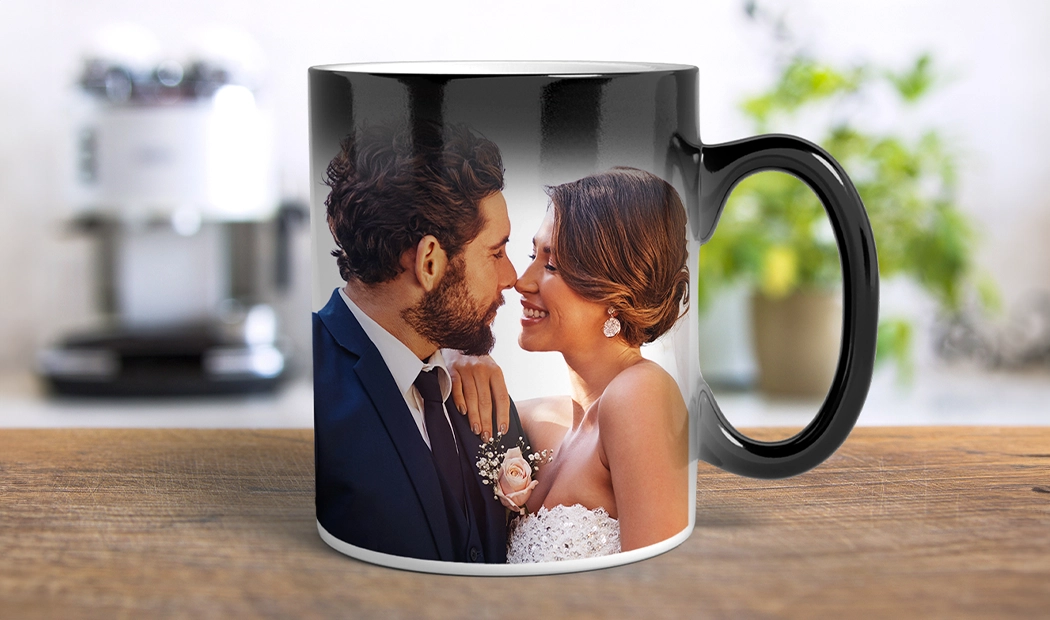 Versa una bevanda calda e guarda la tua foto apparire magicamente su questa tazza termosensibile. Lavare solo a mano.